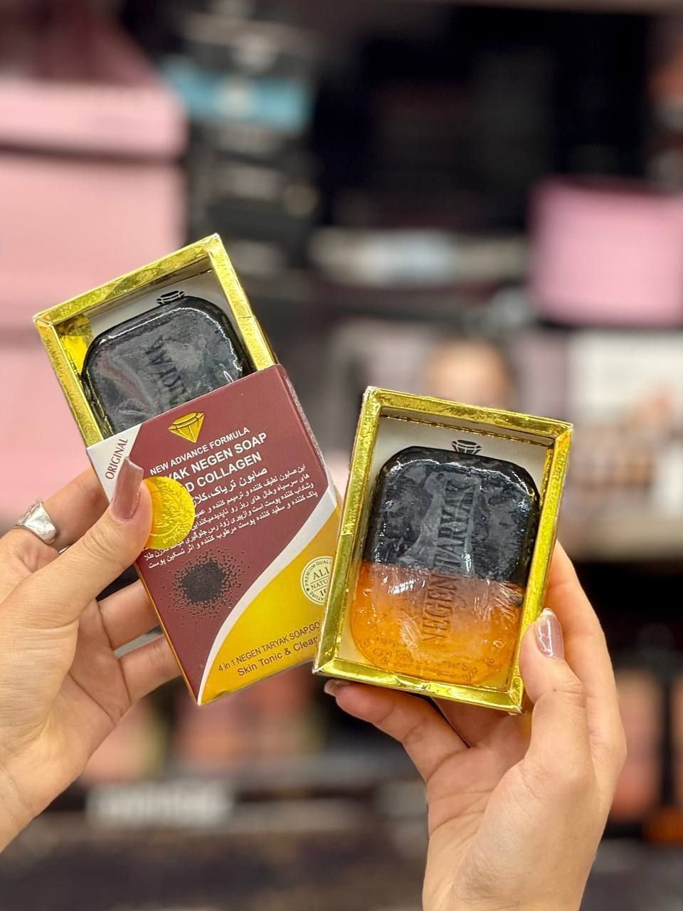 صابون تریاک و کلاژن طلا نگین اصل (4 کاره) روشنکننده قوی، ضد لک و جوانساز پوست